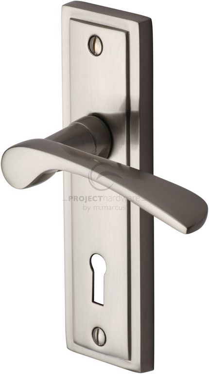The Heritage Brass Boston Door Handle on Backplate is a great quality lever with a slim and slightly curved lever handle that offers an easy and comfortable grip matched to a stepped rectangular backplate.