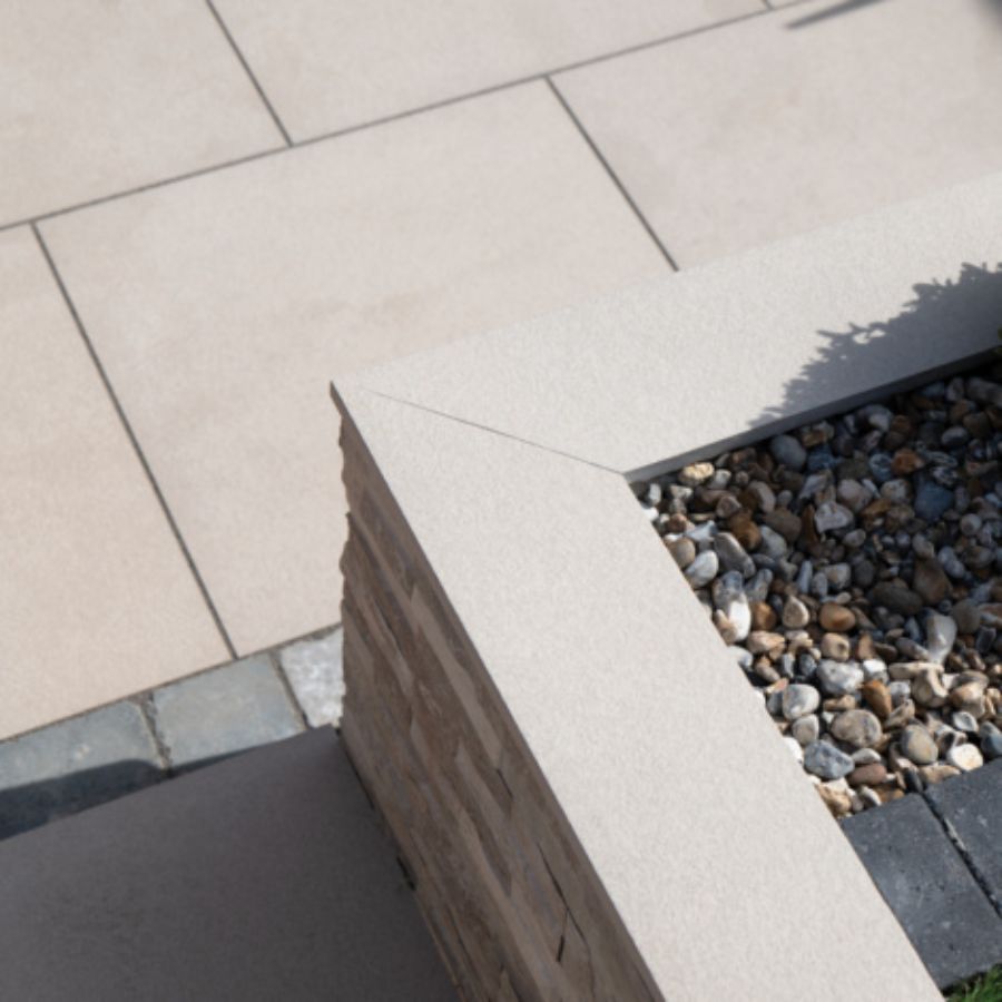 Lucenta offers a contemporary shade of mid grey garden slabs and is finished in a natural stone quartzite texture, with varying tones that provide a truly authentic finish. These porcelain edgings can be used to create contrasting borders around paving, and is great for adding detail to your paved areas.
