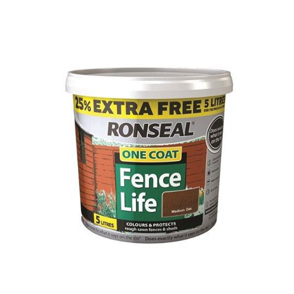 Ronseal One Coat Fence Life gives colour and protection to rough sawn sheds and fences for up to two years, in just one coat.